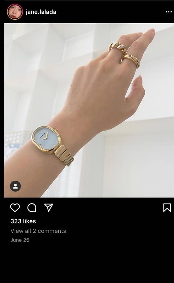 “The Jane watch looks and feels great on my little wrist. Comfortable and minimal. Love it.”